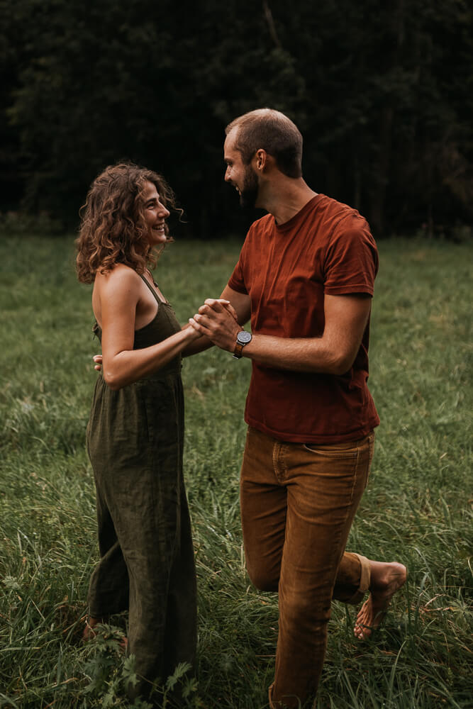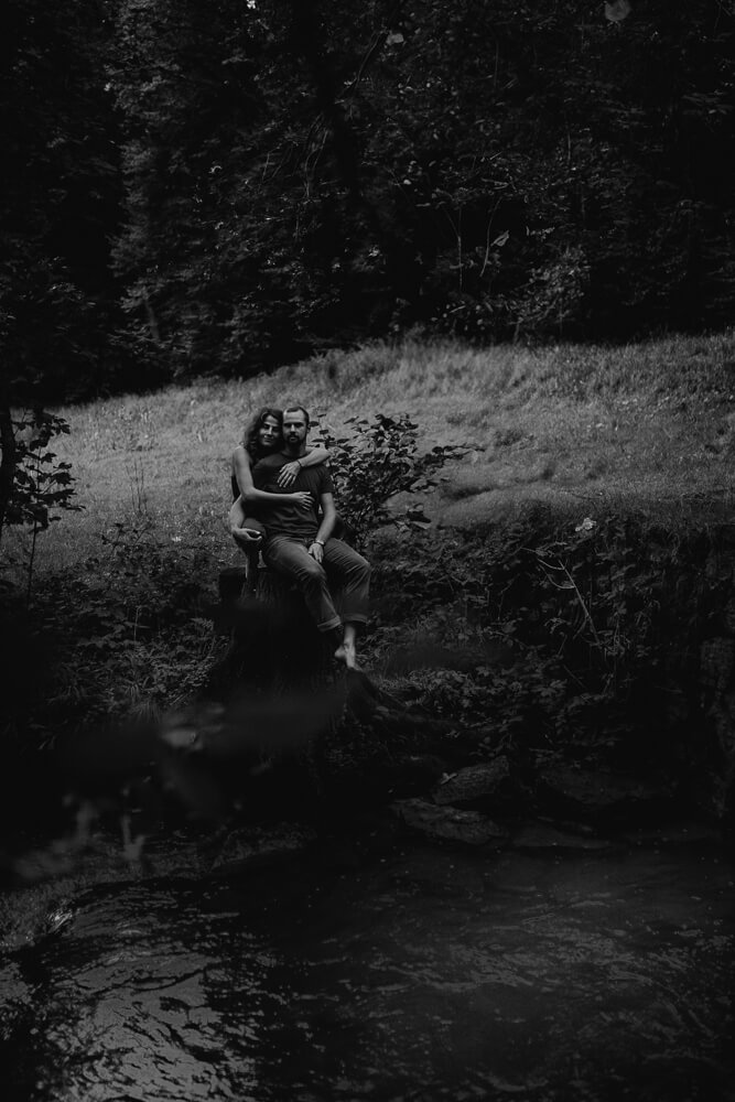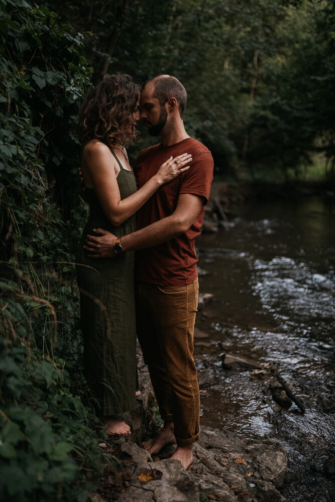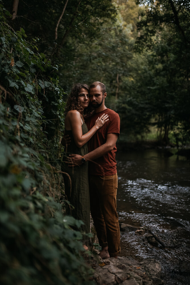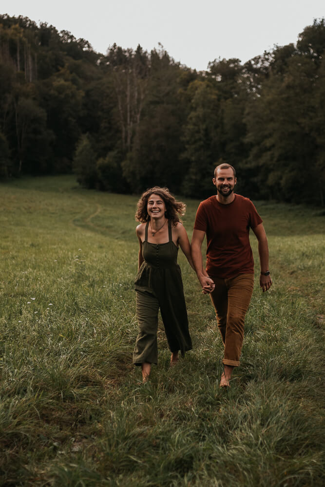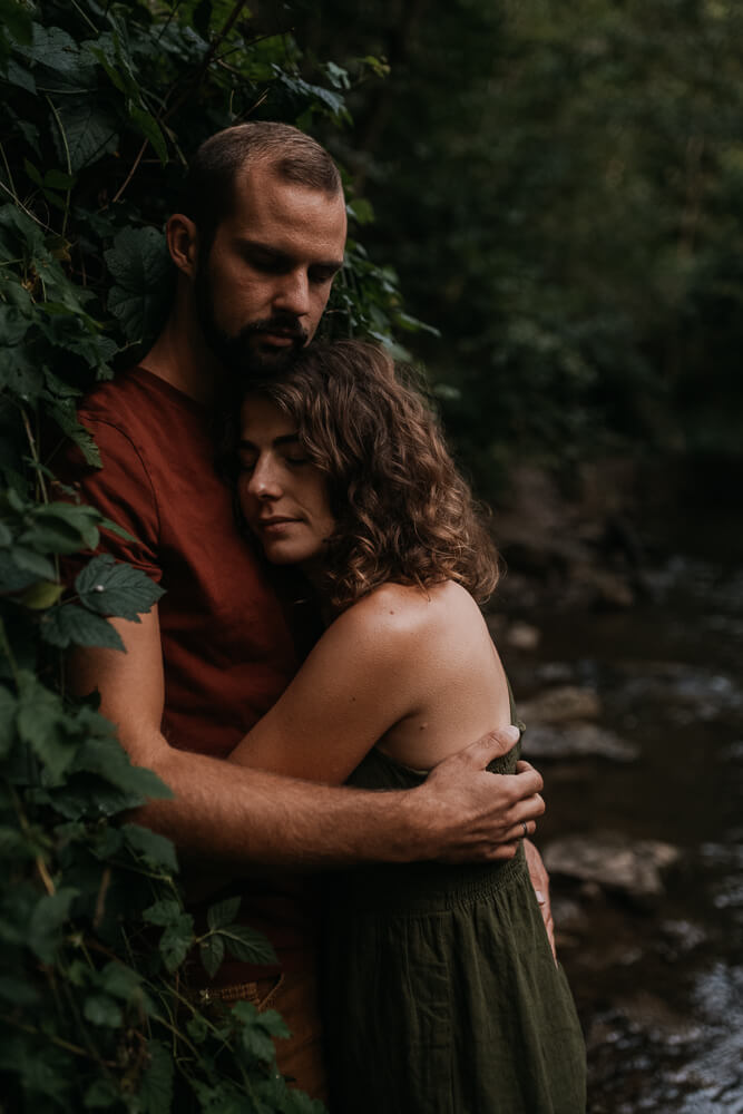 Deborah und Philipp, ein Paar voller Abenteuerlust, waren mit ihrem VW Bus auf Reisen, als wir uns an einem wunderschönen Ort trafen – einem verwunschenen Tal mit plätscherndem Bach und sattgrünem Wald, der im Licht der Abendsonne magisch schimmerte.