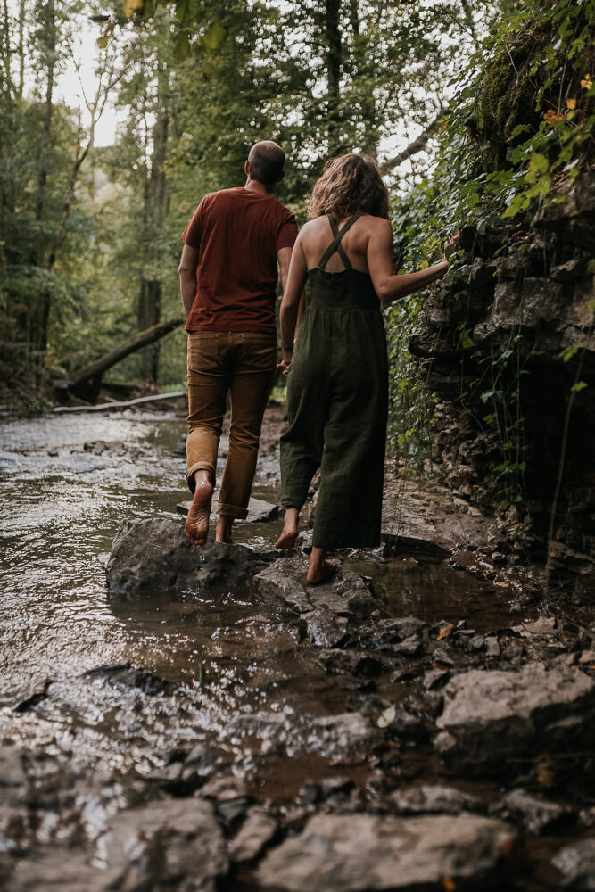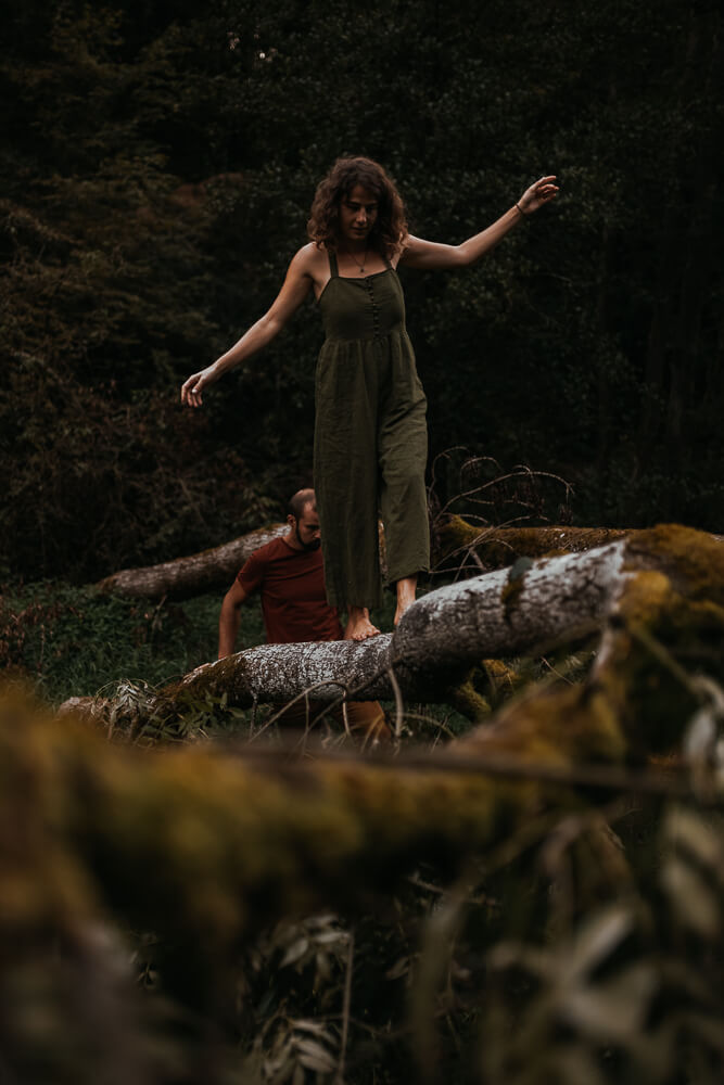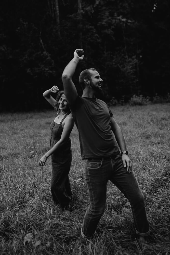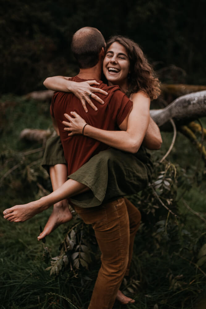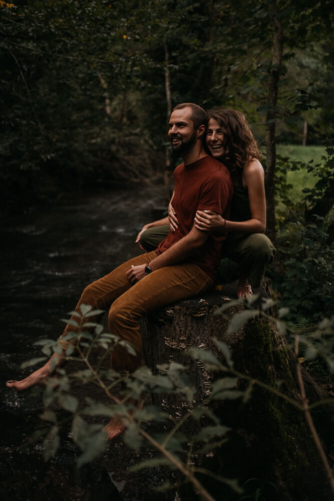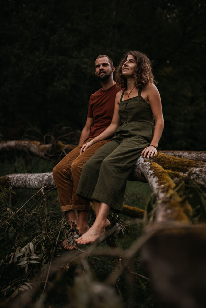 Deborah und Philipp, ein Paar voller Abenteuerlust, waren mit ihrem VW Bus auf Reisen, als wir uns an einem wunderschönen Ort trafen – einem verwunschenen Tal mit plätscherndem Bach und sattgrünem Wald, der im Licht der Abendsonne magisch schimmerte.