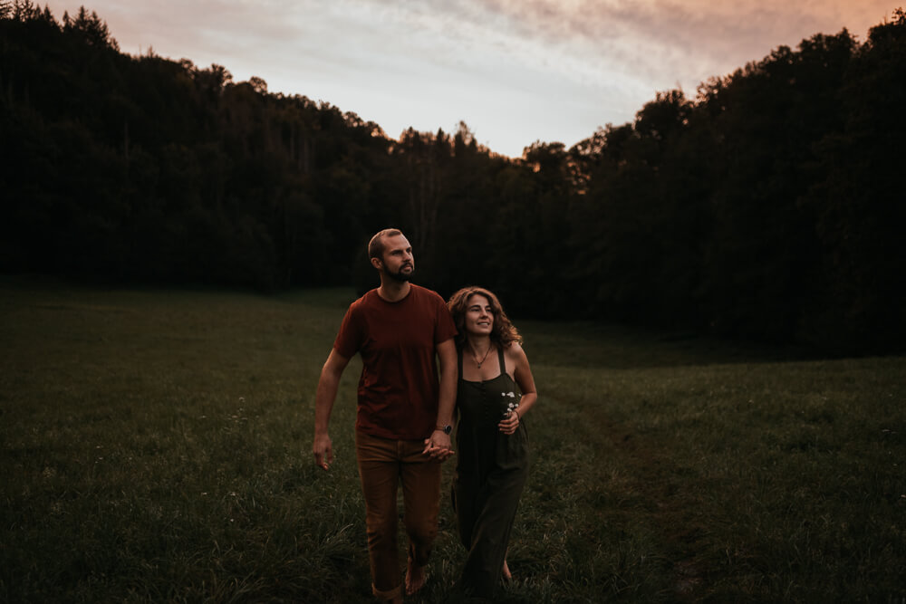 Es war einer der ersten kühleren Spätsommerabende und die Stimmung war ruhig und friedlich. Obwohl die beiden noch nie vor der Kamera gestanden hatten, wirkten sie wie geschaffen dafür, ihre besondere Verbindung in Bildern festzuhalten. Beim gemeinsamen Spaziergang durch das Tal lachten sie, erzählten von ihren Erlebnissen und ließen die Magie der Umgebung auf sich wirken. Ihre Blicke und Gesten sprachen von tiefem Vertrauen und einer unstillbaren Sehnsucht nach neuen Abenteuern – Momente, die nun für immer in Bildern bewahrt sind.