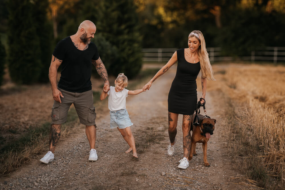 Hey, ich bin Hektor und meine Familie ist einfach die Beste! An einem warmen Sommertag haben wir uns auf einem Feldweg getroffen, um gemeinsam spazieren zu gehen. Mein kleines Mädchen und ich haben wie verrückt getobt – wir hatten so viel Spaß, dass sogar Mama und Papa nicht anders konnten, als mitzumachen. Es wurde viel gelacht und zwischendurch gab es immer wieder Streicheleinheiten. Ich liebe diese gemeinsamen Abenteuer, bei denen wir alle zusammen sind. Für mich könnte jeder Tag genau so sein!